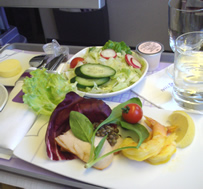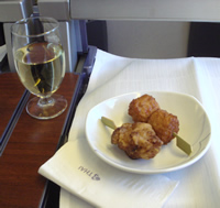 3種類(和・洋・泰)の食事から選んだタイカレーも、そしてワインもなかなか美味しい☆誕生日のケーキ代わりのティラミスは、クリームというよりゼラチンが多く、ただのティラミスプリンだったのが、残念だけど。。。 ……食事もドリンクも、どんどん用意され、どんどん下げられる。 ゆっくり空の旅を感じながら、1杯…なんて雰囲気はみじんもナイ…(泣)。 何かお願いすると、「あーまたアナタね…はいはい…次はなに?」ってくらいの感じ(哀)…しまいには、コールボタンを押しても、なかなかきてくれなくなってしまった。 ワインのおかわりが欲しいっ!…あーもぅっボトル置いてけ〜! |
