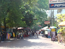 “静か”過ぎて、ちょっと怖くなった私は、感覚を総動員して、もと来た道を、急いで小走りに帰る。 しばらくすると、やっとさっきの露店街に出た………ほっ…。 あとで調べると、ここは僧侶の大学があり、また瞑想の場として、有名な寺院という。 |