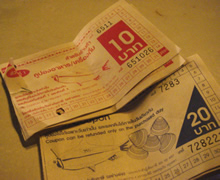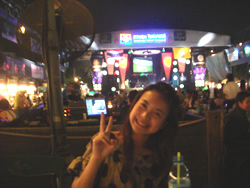ナイトバザールには、屋台が集まったスペースがあって、会場では生ライブが行われています。観光客が多いので、ビール以外のドリンクメニューが充実☆ この旅で一番安く飲めたワイン1杯150B(≒480)…2杯おかわりしたけど、飲み足りなくて、結局ボトル750B(≒2500円)で!(^^; そして、クーポンを買って、料理もオーダー。 同じような店がいっぱいある中で、私が買ったのは、ステージ側のクーポンブースの近くにあるソムタム屋さん。 |