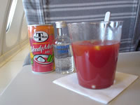 機内食は正直美味しくなかったけど、お楽しみはやっぱり飲み放題のお酒。「ブラッディマリー」「白ワイン」「赤ワイン」…隣の席に座った母と一緒に乾杯! |