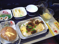機内食のサービスの時、CA(キャビンアテンダント)の中国人のおにーさんに「バッジャウ」と、持っていた“広東語会話”の本を見ながら言ってみると、全く通じない。 |