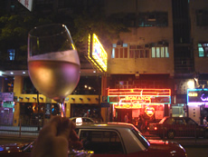マッサージをやっている間中、なにやらずーっとタイ語で、他のマッサージオバチャンBと話し続けるオバチャンA…笑うたびにチカラが弱くなって、最後は撫でられてるようなやさしさ(爆)。 マッサージが終わって、店を出ると、時間はすでに午前0時を回っていたけど、たまたまこの近くで相方が仕事仲間と飲んでいるというので、合流。 香港育ちのEさん曰く、この辺りのキャバクラは、入ると1人最低3000HK$(≒45000円)請求され、払えないと、コワイおにーさんが出てくる…そうです。。。 |