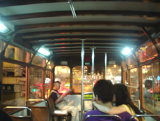 そのまま、九龍半島観光はせずに、再びスターフェリーに乗って、花火を船の上から楽しみます。2.2HK$(≒33円)で、こんなに素敵な夜景と花火が楽しめるなんて、お得でしょ☆ 前回2月に来た時は、とても寒くてテンション下がりっぱなし↓だったけど、今夜のビクトリアハーバーの夜風は心地よく…ずーっと船に乗っていたい気分。 さて、船をおりて、トラムに乗り換え「上環(ションワン)」へ。 前回2月に泊まったホテルの近くで食べた「腸粉」にもう一度出会いたくて、そのお店を探します…。 |