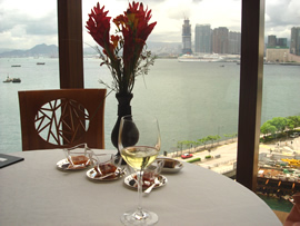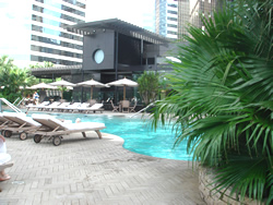 午後は、ホテルのプールでのんびり。 この「ルネッサンス・ハーバービュー」と隣りの「グランドハイアット」のプールは、共有らしく、2つのビルの中間にあります。 プールサイドからは、「ビクトリアハーバー」が見渡せます。 プールサイドでは、冷たいおしぼりのサービス、火照ったカラダに使ういい香りのする化粧水スプレーを氷で冷やして持ってきてくれたり…とスタッフのサービスが素敵っ☆ |