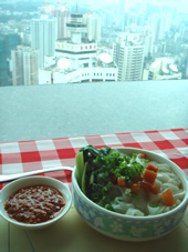 日本では、あまり見かけなくなりましたが(…私も小さい頃、親に食事に連れて行ってもらって、大ハシャギしたなぁ… )、広州では、まだまだ健在で何軒かあるらしい。 ビュッフェ形式の中でも、目の前で調理してくれる麺料理が気になり、“指差し注文”してみました!「少なめ」という単語を知ってたらよかったなぁ…と思うくらいの大盛りだ(汗) 味はまぁまぁ…。でも調味料の豆板醤を入れるとピリっとして、いい感じに♪ |