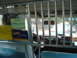 ホテルからタクシーに乗って、「中山記念堂」へ。 広州で何度かタクシーに乗りましたが、だいたいこんな→で、運転手との間に鉄パイプがあって、檻に閉じ込められてるような感じ。地図を見せて指差しで話したくても、スペースがなくて結構困った。 タクシー強盗が多いのかな…。 |