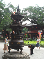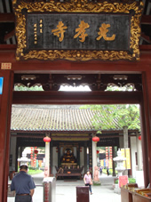 「中山記念堂」を背に“中国革命の父孫文”の像が立っています。 孫文の目線の先にあるのは、中国政府…お役所の建物。 そしてこの記念堂の周りの公園は、しっかりと手入れされた緑多い市民の憩いの場になっています。ゴミ一つ落ちていなくて、とても清潔な公園でした。 記念堂を後にして、地下鉄で「光考寺」に向います。 |