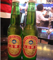 昨日たくさん歩き回ったので。3日目の朝はのんびり。 昼近くなってやっと行動開始!ホテルの近くにある、地元の人がオススメしてくれた高級台湾料理レストランへ。 かなりモダンな店内。客層も垢抜けた人が多いようです。 値段も昨日出会ったお店に比べると3倍くらい高い。 ブランチからビール♪… …でもまだ栓を抜いていないのに、微妙に入ってる量が違うのはチャイナマジック!?(爆) 料理にカメラを向けると、店員さんがダメダメみたいな感じのゼスチャーをしたので、コソっと撮影…ブレちゃいました。↓ |