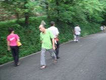 公園内は、山を中心としてるので、坂がめちゃくちゃ多い…(かなりキツイ)。 途中で、後ろ向きに坂を上り始める市民(←写真左…手前のオジサンが正しい方向)。 腕を一生懸命振って、後ろ向きランニングしてる人ばかり…(小学生の頃の登山を思い出す) |