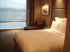 ホテルにチャックインする時、「空いていれば、ビクトリアハーバー側で」とお願いしたら、「部屋の清掃に少し時間をいただけるなら、ハーバービュールームを用意しますが…」とフロントの男性。 |
