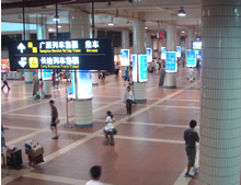 広州の宿、アジアインターナショナルホテルをチェックアウトして、香港へ向う特急列車が発着している「広州東駅」へ。 大きくて新しい駅ビルの中は、案内板が少なく、初心者は迷ってしまうかもしれません。テナント少ないせいか、活気がすくない感じもします。 私たちが駅に着いた時、ちょうど1つ前の電車が出発したばかり。 次の列車の発車時間まで1時間半… 切符を購入して、2Fへ向うと、さらにテナントがガラガラ…レストランや喫茶店は2軒ほどしか見つけられず、仕方なくレストラン(ファミレスの小さい感じ)で時間を潰します。 |
