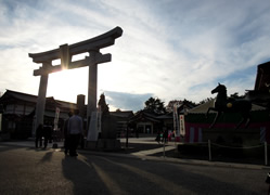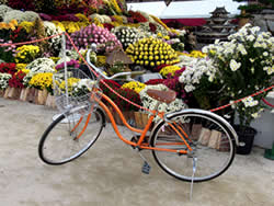 ホテルでレンタサイクル(100円/1h)を借りて、まずは「広島城址公園へ」。 お城の外側の一部は、補修工事中で残念な感じだったけど、 内部では、満開の菊の展覧会が行われていた。 七五三参りの参拝客が多かった「広島護国神社」(写真下右) 原爆の爆風で倒壊後、1958年に復元された「広島城」(写真下) |