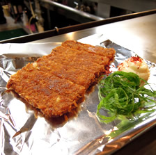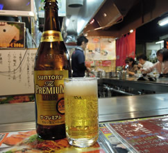 | 宮島から、広島空港へ向かうリムジンバスが発着している広島駅についたのは、リミット1時間半前だった。(実は1時間間違って計算していた・笑) じゃぁ!余った時間で、1杯やっちゃいましょ〜♪ 2日目に行った駅近くの「ひろしまお好み物語 駅前ひろば」に、再訪。 今回は、「焼くんじゃ」というお店に入りました。 「そば肉玉&イカ天(ネギかけサービス)」が焼きあがるのを待つ間に、「ビール(プレモル)」の肴に、「がんす」(魚肉の練り物揚げ)と「牛すじポン」。 お酒のメニューに、 先日、西条の酒蔵めぐりで出会った「亀齢(キレイ)」をみつけた。 今回の旅でイチバン印象に残ったお酒。 そしてやっぱり、醸された土地と地元の料理は、最高のマリアージュ。 この日本酒が、つまみにも、お好み焼きにも、合うんだよなぁ☆ |
