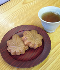 −−−残り時間40分。 さて、フェリー乗り場までダッシュだ ! …と、その道すがらの横小道から甘い香り〜。 シックなお菓子屋さん発見。 そいえば、朝からほとんど何も食べてない…登山で疲れた体が、私にしちゃ珍しく甘いモノを欲していた。 できたての「もみじ饅頭」を食べさせてくれるという。 頂いたのは、このお店オリジナルの『もんぶらんもみじ』。 栗の餡が絶妙♪坂本菓子舗さん、めっちゃうまかったぁ…☆☆☆ |