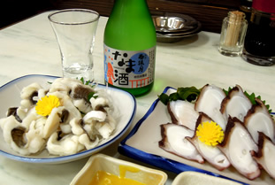 マグロ、カンパチ、鯛、しま鯵、平目、小イワシ…。 独りじゃなかったら、片っ端から食べるのに…。 厳選を重ねて、オーダーしたのは「鱧の湯引き」と「瀬戸内海タコ」。 「タコ」…前回広島に来た時も、その味の濃さに感動した。 「鱧」…今年の夏はまだ食べてなかった。 いずれも630円/@。この量と質…コスパ高いわぁ♪ |
