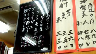 壁じゅうに張られたメニューを眺めると、そそられる品ばかり☆ |