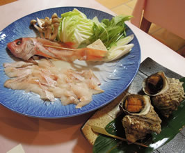 | 日御碕神社(ひのみさき)神社のさらに奥には、海に浮かぶお社。「経島(ふみしま)」が見えました。 無人島で、例祭の時にだけ、宮司が立ち入りを許されているという。この岩でできた島の力強い雰囲気が印象的。 ・・・・・・ この先にある「日御碕灯台」の駐車場からすぐの所にあるお土産物&定食屋「花房商店」で、「ウニ丼」を食べました〜♪ |