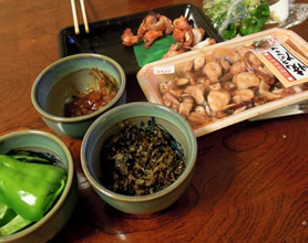 部屋に戻って、 地元のスーパーで買った お土産のお惣菜と、 地酒を開けて、 部屋飲み。 これまた “合宿感”あります (哀) |