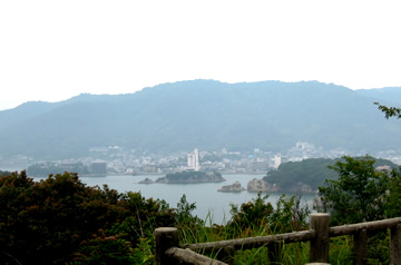 。「仙酔島」は、周囲6km火山でできた島。 近年のパワースポットブームにも取り上げられていて、 平日のこの日も、観光客の方々が来ていました。 |