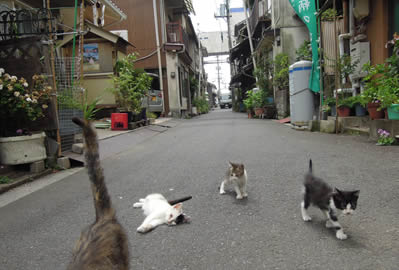 さぁ、鞆港に到着しました! 出迎えてくれたのは、可愛らしい子猫たち♪ 春にミュウを亡くして、“猫力”が欠乏してる私には、とっても嬉しい出会いです。 しかも人懐っこい♪ ゴロンとなって、ニャぁ〜♪ しっぽピーンって、ニャぁ〜♪ たまらんデス。 |