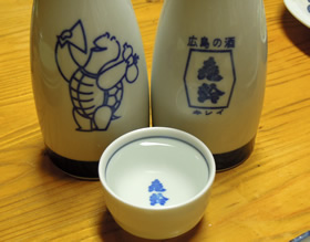 | 縄暖簾をくぐったら、蛍光灯ばっちりの、コの字カウンター。 くぅ〜♪ツボだわ〜♪ レモンサワーをグビッとやって、 広島・西条の地酒「亀齢(キレイ)」をクピクピ。。。。 地元にーさんに薦められるがままに、 鶏料理をパクパク。。。。 |