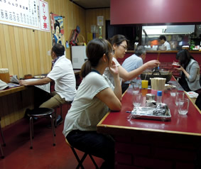 2軒目は、「高砂屋」さん。 ここは、「とり新」さんの2,3軒となりのお店。 2軒目でガッツリなラーメン…って、 ちょっと不安になったが…いやいや、、、、 ここもイー雰囲気のお店です! 中央に置かれた「おでん」は、自分で好きな分とって、自己申告。 ラーメンは、透明な脂がかなり浮いてますが、 スープは驚くほどスッキリしている、でも、しっかりしたコクの柱。 麺は広島らしいストレート細めん。 同じ細さの広島モヤシの食感がイイです☆ まさに、酒飲んだ後に食べるラーメン。の、理想系。 |