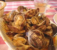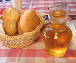 まずは、デキャンタで白ワイン。 そしてこのお店の名物の1つ、あつあつパン。 このパン、外側はサクサクのカリカリなのに、中はモッチリふっくらしていて、絶妙な美味しさ。パンだけでワインが進みます。 写真つきのメニューをみながら、母のリクエストはアサリとエビ。 パプリカや香菜・トマト…ちょっと変った香辛料の使い方。アサリ・エビ共にダシがでたソースも絶品で、パンにつけて食べると激ウマ☆ 母は香菜が苦手だけど、美味しい♪と言って、食べていました。 そして最後にフェルナンド名物「仔豚の丸焼き」を1人前。 カリっと香ばしく焼き上げられた皮とジューシーな肉。 あーワインが足りなくなっちゃうよ〜(笑) 他にも、もっと食べたいメニューがあったけど、2人で食べるには、かなり多い…お腹に余裕があれば、パンもおかわりしたいくらいだったなぁ …また機会があったら、ゼッタイ来たい! |
