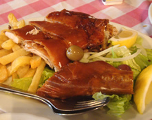 ![]() 名物の豚の丸焼き |