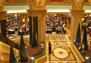 エントランスに入ると、こーんな→感じのイタリアン風味の装飾。 ディズニーランドとかアミューズメントパークにきたような感じです。 母と写真を撮っているとホテルのスタッフさんが寄って来て、一眼レフで写真を撮ってくれるんですが、記念アルバムに入れて売りつけられます…めっちゃ高かった(汗)もちろんそれは丁重に「いらない!」と断って、先へ 。 しばらく歩くと、スゴイ広さのカジノが…ぐるり見渡してぜーんぶカジノ!!! そしてどのテーブルもだいだいお客さんがいる。 この空間にどれだけの人がいるんだろう… |