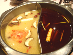 ![]() 白いスープは旨みたっぷり♪赤いスープは激辛! |