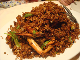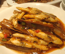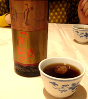 写真つきのメニューを指差し、筆談で蟹や紹興酒の値段交渉。 蟹やロブスターなどのメニューは、基本の値段設定はあるけど、1匹の重さによって値段が変わるから、ここでしっかり交渉しとかないと、あとでぼったくられる可能性がある。 紹興酒はメニューなかったけど、飲みたいと言ったら、出てきた…しかも1本80HK$(≒1200円)と、かなりお得な値段で出してくれました。 |