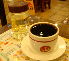お目当ては、ビクトリアハーバー夜の名物“シンフォニーオブライツ”ですが、スタート時間まで、香港スイーツで時間潰し。 母は、小豆とココナッツのアイスクリーム、大きくカットされたマンゴーが乗った「マンゴーサンデー」。甘いものが苦手な私は、デトックス効果があるといわれる漢方の「亀ゼリー」。 「マンゴーサンデー」は、見た目ほど甘くなくて、美味しかった♪大きな器に大盛のサンデーを母は嬉しそうにペロリと平らげました(笑) |