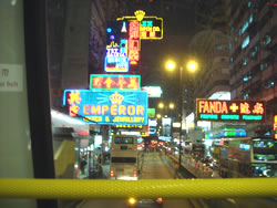 ほっと一息入れた後は、香港名物の2階建てバスに乗って、ネイザンロードを北へ向い「旺角」へ。 |
