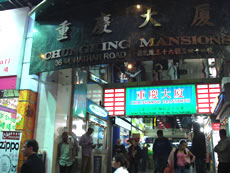 さて、「重慶大厦」に到着…うわっ!これまた違う意味で変な匂い…。 入口に立っている人種は、たぶんインドやイスラム圏の人たち。中のレストランからは、また一味違う香辛料の香りが…。 奥へ進むと、目のギョロっとした男性がいっぱいいて、こちらを見ている。日本人や中国系の女性はもちろんいない・・・コワイっ。 “入口近くの両替商のレートは最悪で、この建物の2階にあるお店に行くべし!”と某ブログに書いてあった…でも奥へ行けば行くほど、私のカラダが危険警報を鳴らす…ダイジョウブ…しっかりアタシ!…忍ちゃんも無理やり私に合わせているが、相当顔が引き攣っている……今・試練の時。。。 |