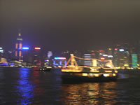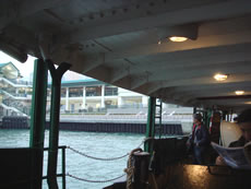 だけど彼女の説明を解読して、なんとか「スターフェリー」乗り場まで到着。 トラム同様、このスターフェリーも窓がなく、対岸の九龍までおよそ8分、冷たい風に吹かれ、私たちのカラダはすっかり冷え切ってしまった。 |