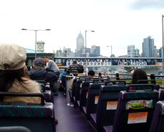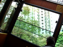 ![]() ピークトラムへ向うオープントップ・バス |