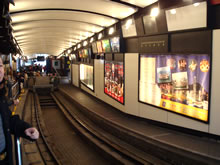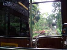 乗り込んだトラムの内装は、アンティーク。座席は、使い込まれた木のイス。 かなり激しい勾配…カラダが斜めになって、腹筋・背筋に自然とチカラが入る〜うぅ…なんかキツイ…。 しかもお尻の位置が変…お尻が木のイスに三角に沈む感じ(←わかりにくい!?) |