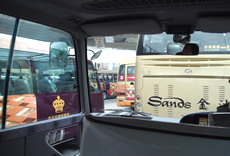 マカオのフェリーターミナルに着くと、すぐに「観光案内安くするよ」(広東語)と言うような感じ(広東語はわからないので…たぶん;)で、しつこく話しかけてくるタクシーの運ちゃんらしきオヤジにつきまとわれた。 |