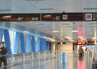 なぜか、前の方に座っていた会社員ふうの男性が、私たちの席のすぐ後ろの扉に急いでやってきて立っている…よく見たら、その扉は係員が出入りする所で、この扉も開かれるらしい。 本来、スーパーシートのお客さんから、順に下船案内されるのに、この扉を使えば、普通席でも一番最初に出られるのだった。 私たちも便乗して下船…おかげで、入国審査もほぼ並ばずにスルー・・・船の席は残り物だったが、“残り物には福がある”。 |