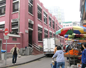 市場を抜けると、さらに露店ひしめく通りにぶつかった。 こちらは、まだまだお休み時間じゃないないようで、 みんな忙しそうに働いていた。 ここは、先日の香港路地裏の顔と、 同じような雰囲気と時間が流れている。 そんな中見つけたアズレージョを思わせる青いビルは小学校。 この露店で、見つけたバッグ↓ 最初、500HK$と言われたが、 半額の250HK$(≒3000円)で交渉成立。 |