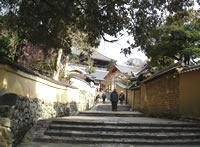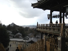 | 大仏殿を後にして、毎年春に行われる仏教行事“お水取り”が今夜ちょうど行われる「二月堂」へ。 人力車のにーちゃん情報で、大仏殿の裏側から回っていくと、中世の雰囲気が残る建物と石畳の階段の情緒ある道を通る事ができるって聞いて、行ってみたら大正解!混んでないし、まさに“和”! |