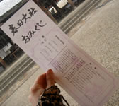 そろそろお寺の閉門を知らせるアナウンスが流れ始めました。 カラダも冷え切ったし、帰ろうかな…と思ったところで、閃いたっ!10月に出産予定の姉に安産守りのお土産を買おう! 南大門の近くで客待ちしていたさっきの人力車にーちゃんに安産祈願で有名な所をきいたら、隣の「春日大社」を教えてくれた。 |