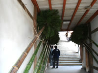 | 「二月堂」の裏口には、“お水取り”の時、火をつけて振り回す“松明”が用意されていました。 夜までブラブラ観光して、“お水取り”の見物できるとよかったのだけど、雪が降る寒さの中、ポカポカ陽気の東京からきた私は春のコートとストール一枚の装いで、さっきからぶるぶる。手もかじかんでしまっていて、うまく動かないくらい(寒) 二月堂の裏手にある休憩所で、甘酒を飲みました。 おろし生姜を入れる甘酒は初体験☆ でも私はやっぱりそのままの味が好きだなぁ。 このあまーいあつーい甘酒で、ほっと暖かくなって、南大門方面へ帰ります。 |