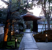 「仁和寺」を後にして、昨日の人力車のにーちゃんに教えてもらった情報を元に、この時期夜のライトアップが行われている「東山」へ。 バスに乗り継いで「知恩院」 に到着した時は、まだ灯りがともる前でしたが、歩いて清水寺の方面へ向かう途中、一斉にライトアップSTART! これぞまさに“京都”というイメージの路地や、お寺を優しい灯りが浮かび上がらせ幻想的。 |