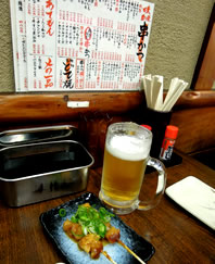 | まず「生」&「どて焼き」。 つづいて、揚げ物三昧開始〜 定番「串かつ」、 「砂ずり」、「名物ホルモン串」←コレ超ツボった☆ 「きす」、「れんこん」、「にんにく」…。 お酒は泡盛「残波」へチェンジ! もりもりの「残波」うれしー♪ スマホの充電もさせてくれたし、店長さんといろいろ話したけど、すごくいい感じだった〜☆ |