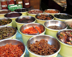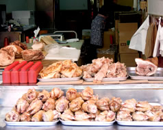 鶴橋駅の周りは、まさにカオス。 アジアらしいパワーに溢れた小道が続く。 韓国の食材だけでなく、 魚介・肉・野菜なんでも揃う。 |
