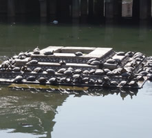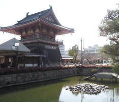 鶴橋を後にして、「四天王寺」へ。 池の中に大きな石ころがゴロゴロしてる…と思ったら、すべて亀だった!! 拡大すると→ 申し訳ないけど、ちょっと気持ち悪い。。 |