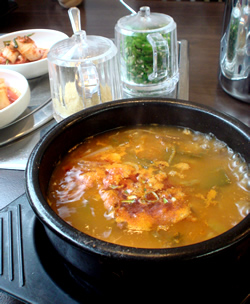 韓国は初めての土地。 仕事がらみでの渡航のため、あまり観光はできなかったのだけど… 美味しかったソウルでの食事をレポートします! まずは… ←コチラ 「ウゴジカルビタン」 干した白菜や大根などの野菜と、牛肉を、韓国味噌で煮込んだスープ。 ちょっとだけ酸味を感じる爽やかな旨みと辛味。 「おろしニンニク」と「刻み青唐辛子」が一緒に登場。 初日、初食から、激辛好きの魂に火を灯す組み合わせ♪ スープ自体、何も入れなくても充分辛いケド、 せっかくなんで、1スプーンずつ投入したら… おぉ!!!さらにウマイっ! |