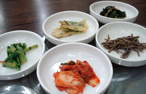 | さて、、、話をもどして… このお店、期待していた『スンドゥブ』は、イマイチだった(泣 卵に火が入りすぎてカチカチ大きく固まりになっていた(哀 でも、「パンチャン」☆ この旅・初の『チヂミ』。 他のお惣菜もなかなか美味しい。 時間は午後5時。 隣で、マッコリと焼酎をやりながら、 酔っ払いオヤジたちがワイワイやっている…。 どの国でも、“早い時間の酔っ払いオヤジ”をみると、ほほえましく思う。 |