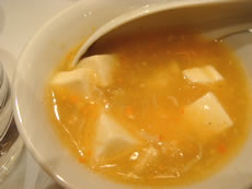 | そして上海といえば、「上海蟹」! この時期は、ちょうど旬なんです。こりゃ食べなくっちゃ!です。 「豆腐と蟹ミソの炒め」は、濃厚なミソの旨みに包まれたやわらか〜い豆腐がぁぁぁふふうウマイっ。 |